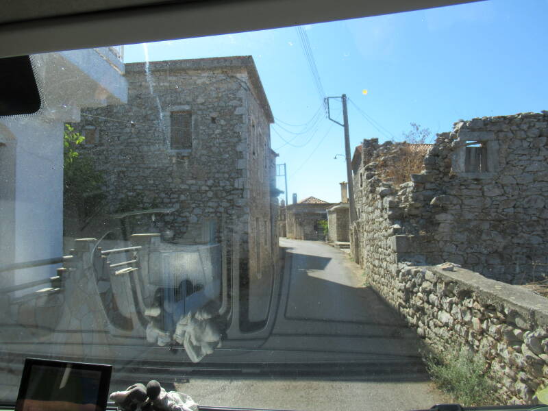 We rijden door het gebergte met diepe kloven, groene begroeing en rotsige uitlopers van behoorlijke hoogte, richting Itylo waar tot in de 18e eeuw een slavenmarkt was.