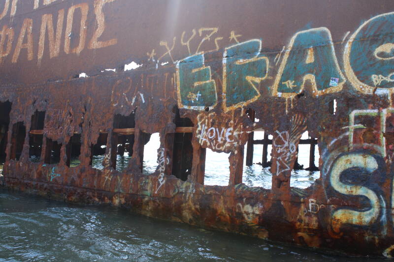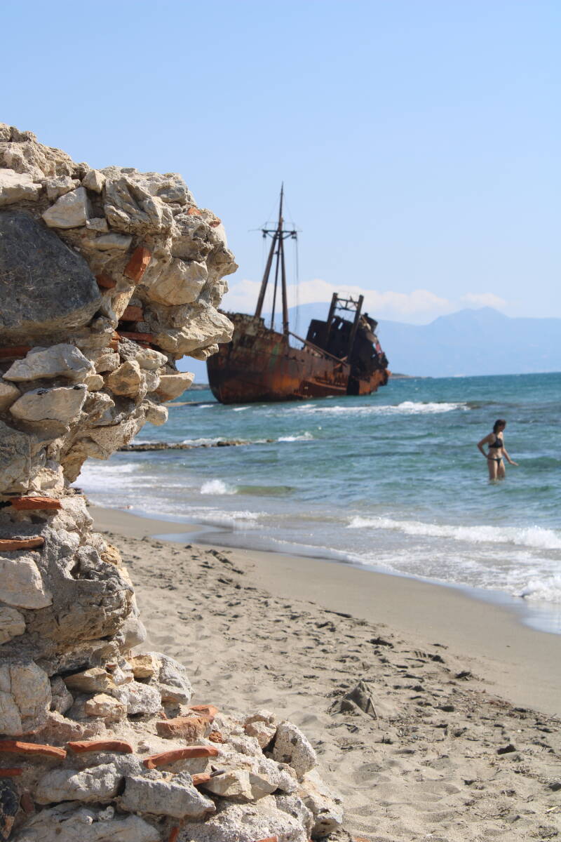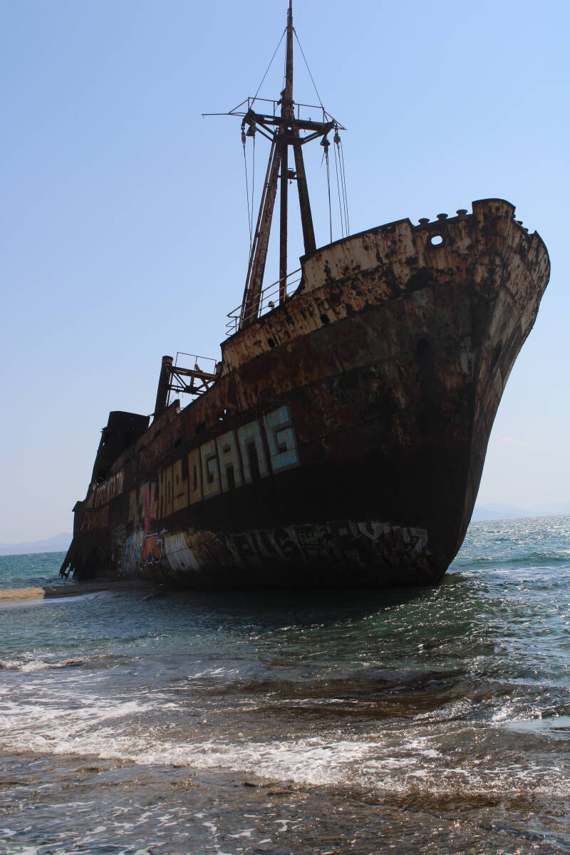 Rob heeft op internet het ware verhaal gevonden. Het 67 m lange schip was in 1950 gebouwd en is in 1980 in Gyhtio belandt omdat de kapitein ernstig ziek was en naar het ziekenhuis moest. Er waren financiële problemen met de crew en ook problemen met de motor. De crew werd ontslagen en het schip werd verankerd in de haven van Gythio waar het tot 1981 bleef liggen. De eigenaren gaven geen respons en gedurende erg slecht weer is het schiplosgeslagen en op het strand van Selinitsa op 5 km van Gythio aangespoeld, waar het nog steeds ligt. Het trekt vele toeristen die het komen bekijken en tevens genieten van het mooie strand en het heldere zeewater om in te zwemmen.