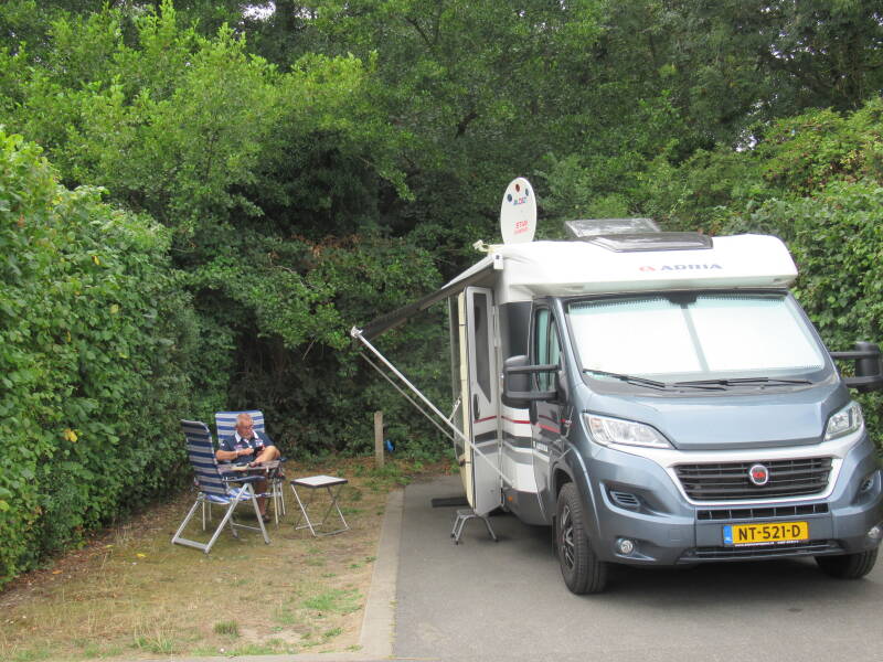 Allereerst kijken we bij Gravelines naar de CP, er is weer eens een wegomlegging zodat we niet op de CP komen. Dan maar door naar een volgend adres bij Oye-Plage, de CP is opgeheven, er zijn nu bouwactivietiten van huizenbouw. Het begint al goed. Dan rijden we naar Marck bij Calais, gelukkig een mooie plek!!! Het is warm, dus de stoelen naar buiten en een lunch gemaakt. We maken een wandeling rond de CP er is een groot activiteiten centrum dat nu niet in gebruik is. Rondom zijn verschillende veldjesmet dieren, diverse vogels, geiten, een varken het lijkt wel een kinder boerderij.