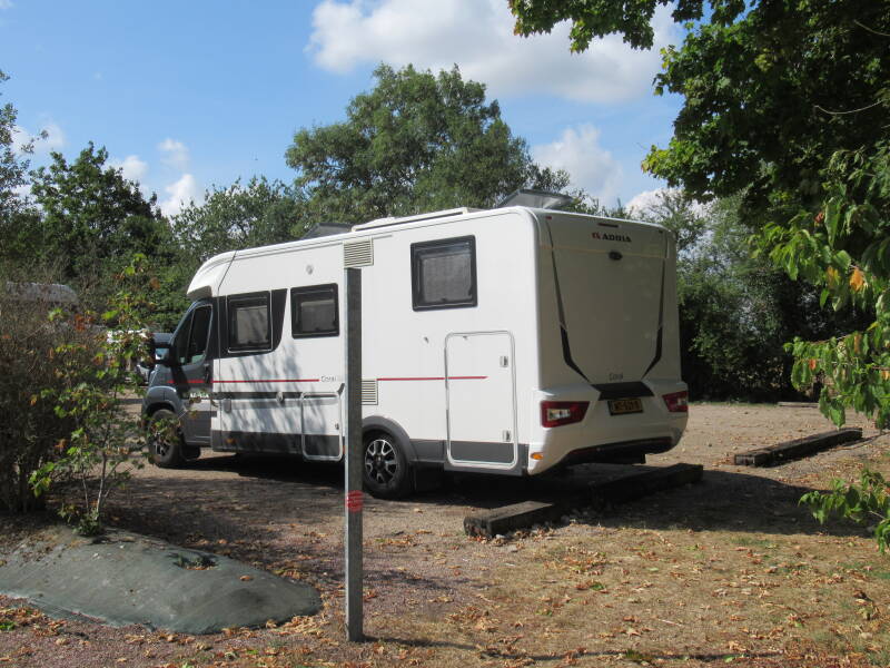 Op ons gemak, na een ontbijtje en servicen, gaan we weer verder. Het ziet er naar uit dat het vandaag gaat regenen en als we vertrekken schijnt de zon nog. Eerst de D940 en voorbij Le Treport wordt het de D925. We rijden langs Dieppe en hier begint het te regenen. Het plan om in St. Valery-en-Caux op de CP aan de rotsen te gaan staan, laten we maar varen en gaan bij Fecamp richting Le Havre, via de D925. Het landschap is hier totaal anders, heuvels en mooie vergezichten. Ook de dorpen zien er welvarender uit. We besluiten om naar Honfleur te rijden, er is een grote en goeie CP vlakbij het stadje. Gelukkig is het weer droog geworden en steken via de Pont de Normandie de Seine over. Nog even gas getankt en dan snel de CP gevonden. Er is nog voldoende plaats en we hebben hier zelfs stroom. Niet echt nodig maar het is bij de prijs inbegrepen. Er kunnen hier maar liefst 240 campers staan, gelukkig is het terrein verdeeld in verschillende stukken, afgeschermd met begroeiing dus het valt niet op dat er zoveel kunnen staan. Wij staan aan de buitenkant met zicht op een binnenhaven waar wat plezierboten liggen.