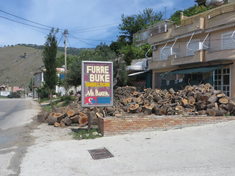 Via Lushnje en Kavaje naar Durres. Daar gaan we even overleggen waar we kunnen gaan staan om te overnachten. Inmiddels is het al 1 uur geweest en de rij uren gaan tellen na zo'n vermoeiende rit,. Hier is niet zoveel, er zijn een paar campings aan de kust maar die zijn moeilijk te bereiken. We besluiten om verder te rijden, 40 km verderop kun je staan bij Hotel Europapark en inderdaad, een grote lege parkeerplaats bij het hotel. We stoppen en gaan een hapje eten maken op deze saaie plek.