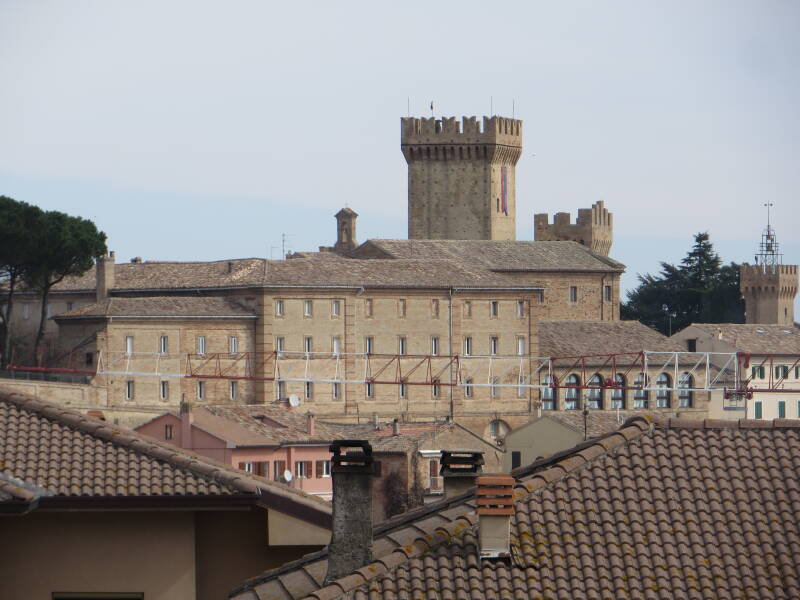 Vannacht heeft het hevig geregend en we staan op met uitzicht op een grijze lucht. Later in de ochtend wordt het droog en lopen we naar het dorp. Het is volgens de VVV een van de mooiste dorpen van Italië, er zijn historische monumenten, mooie oude huizen, een prachtig kasteel, een oorlogs-museum, enz., er is genoeg om te zien, maar alles is dicht!!!!.