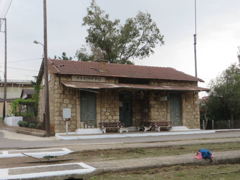 Vanaf Pilos rijden we via Gialova richting Gargalani, hier is een betrekkelijk nieuwe weg die weer is uitgebreid. Dan de weg naar Filiatra door enorme olijfboomgaarden en door Kyparissia, waar het erg druk is, richting Kalo Nero. Dat is een verrassing, vroeger hebben we ooit aan het strand gestaan , bij het dorp rechtsaf maar nu was daar niets waar je kunt staan. We zien een camper linksaf slaan en volgen, komen op een mooi stukje direct aan het strand met prachtig uitzicht op de zee, waar al wat campers staan. We sluiten aan, zitten even buiten, maar al gauw werd het te fris. Rob maakt een praatje met wat Duitsers die hier al jaren komen en hoort dat er bij het oude station een leuk restaurantje zit. Inmiddels zijn er heel wat campers bijgekomen, zo te zien een gewilde plek. 'Avonds lopen we naar de taverna en worden niet teleurgesteld, lekker eten en zeer betaalbaar!!!!