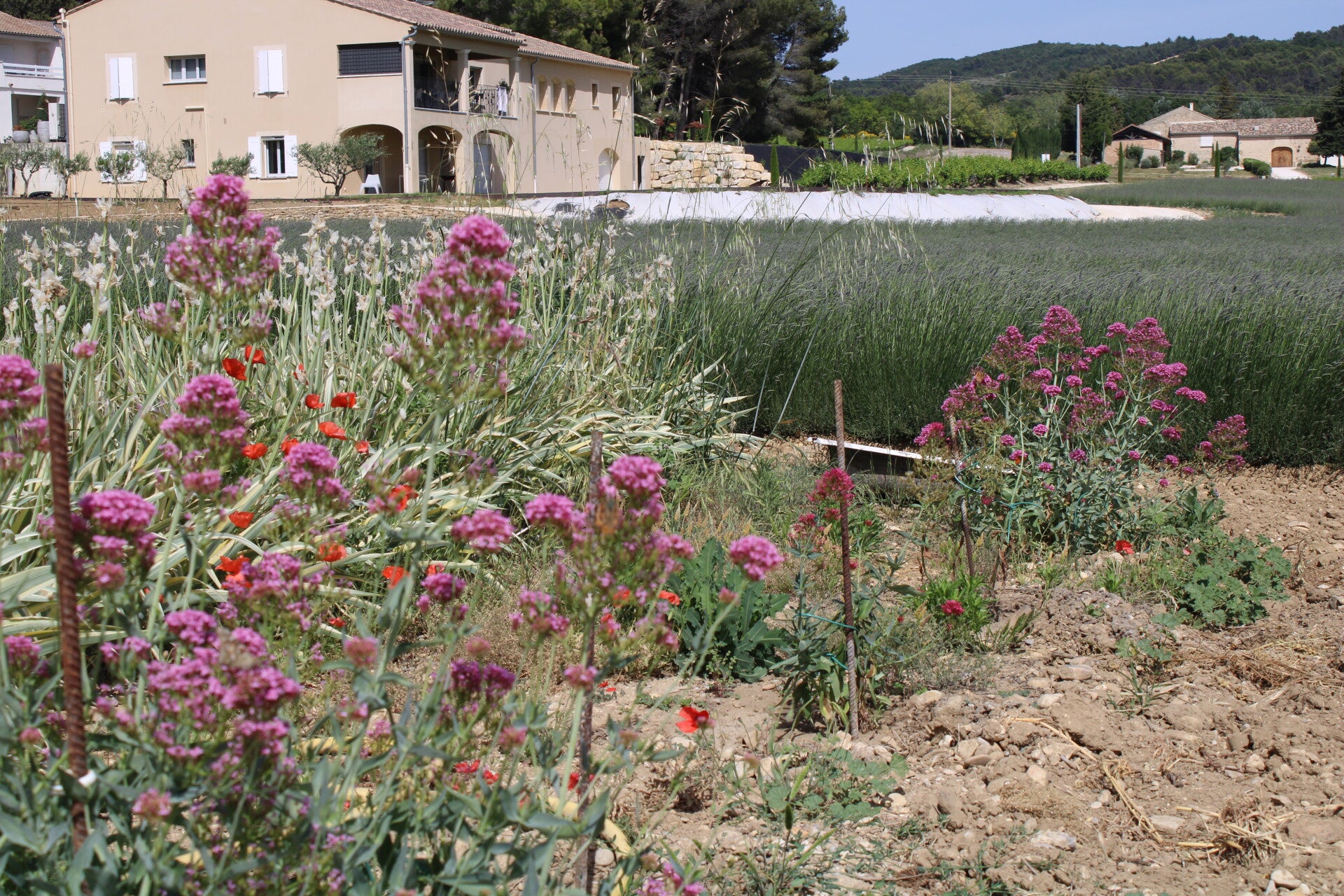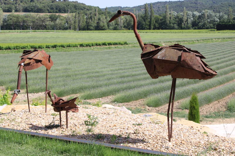 Voor de Vaison verlaten gan we even langs de Hyper U voor wat aanvulling. Dan richting Visan waarbij we weer door het prachtige Provencaalse landschap rijden. Overal staan wijnstruiken en de wijnboeren zijn niet te tellen. Men bied aan dat je overal wijn kunt kopen en proeven. Wij gaan naar het Domeine Lauribert, een producent van Cote du Rhône wijnen waar we al vaker op de camperplaats bij het wijnhuis hebben gestaan, dat omringt wordt door lavendel velden die jammer genoeg nu nog niet bloeien. Het is een prima plek, water, WC, elektra en rond 5 uur de wijnproeverij. Er waait een stevige wind en we proberen uit de wind te gaan zitten om de mooie natuur rondom ons te kunnen bewonderen. Hier is niks veranderd, monsieur Robert, de wat oudere licht dove eigenaar, heet weer ons harte welkom.